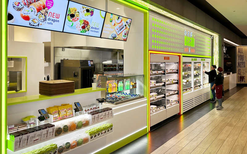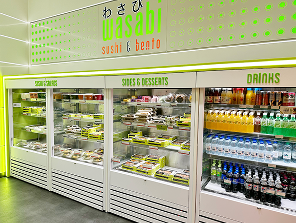 Wasabi needs big capacity for their extremely busy sites across the UK and our MULTIDECK DTG cabinets deliver! This range offers high volume and efficiency in stylish units that we vinyl-wrap in white to match Wasabi's interior fit-out. These work extremely well in high traffic locations where convenience and making food look great are key. We're working with Wasabi as they roll out new UK sites and ensuring we deliver seamlessly across their large network.